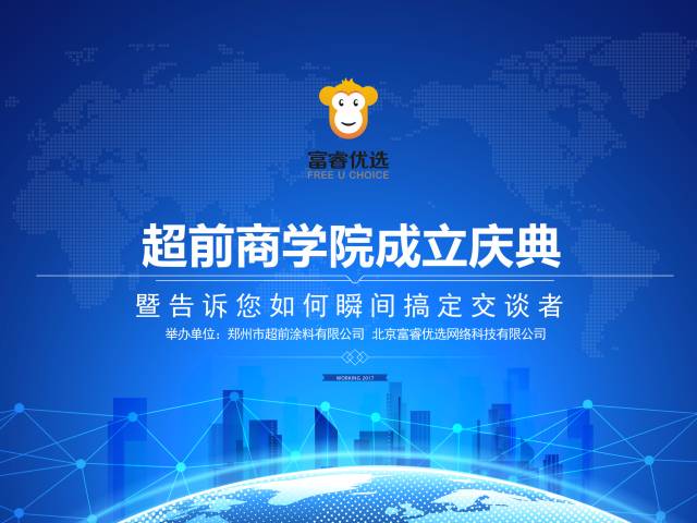 2017年04月19日,超前商學院成立揭牌啟動大會在鄭州隆重召開,鄭州市超前涂料董事長、北京富睿優(yōu)選選董事長—閻運鋒,人社部高級人力資源管理師、WFA國際促動師協(xié)會行動學促動師—代志杰,中國智慧策略應用專家、企業(yè)運營管理專家、飛漲策略(北京)品牌管理有限公司董事長—董建明等50多位企業(yè)家與公司員工出席本次活動。